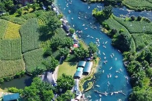 九顿天窗清澈湛蓝的水,可以租上一个浆板,近距离感受秀丽的水上风光,还有那在水中摇曳着曼妙身姿的“水下森林”。 (下水一定要穿救生衣,浆板30-50元/小时,以实际为准,有桨板的可以带上放车里)