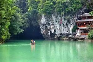 这里是桂西绝美秘境,水似翡翠,景若天画,洞中有天窗,似皓月当空。这是装饰华丽、景幻莫测的水下龙宫,也是“水上芦笛岩”。